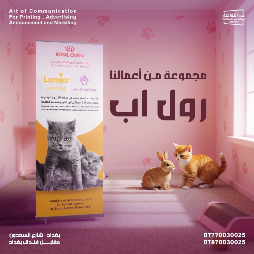 مثالي للمعارض والمناسبات و الايفينتات احجز نسختك اليوم من فن التواصـــل تتوفر قياسات كبيرة للرول آب خصم ٢٠% للكميات تتوفر خدمة توصيل لكافة المحافظات معرض صور المشروع